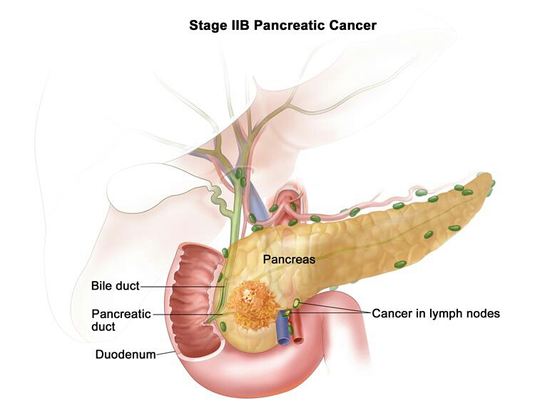 - Stage 0 (Carcinoma in situ) : Abnormal cells are found in the lining of pancreas.These abnormal cells may become cancer and spread into nearby normal tissue.